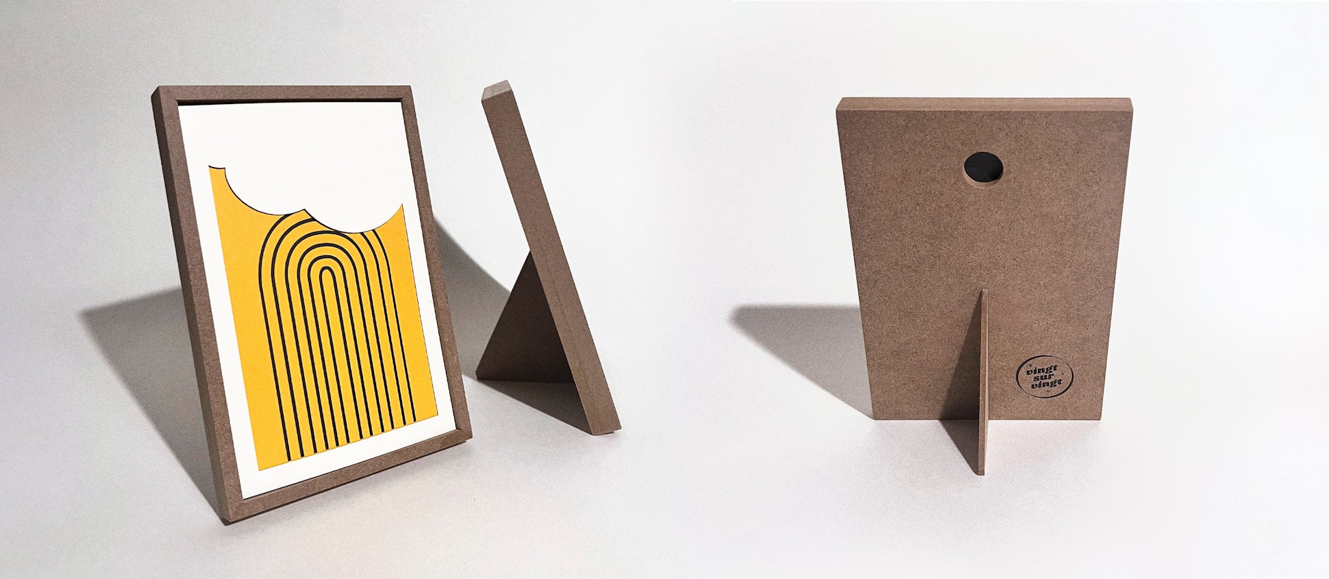 Découvrez l'art de personnaliser votre espace avec notre cadre en bois sur mesure conçu par VINGT SUR VINGT®. Doté d'un tout nouveau pied amovible en bois, il vous permet de présenter votre œuvre où vous le souhaitez. Changez facilement l'emplacement de votre tableau, adaptez-le à chaque ambiance ou humeur, et redécouvrez la beauté de vos créations.